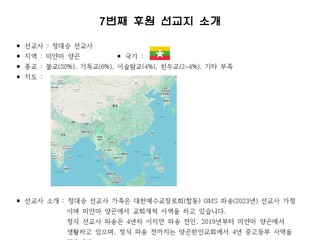 7번째 후원 선교지를 소개합니다.